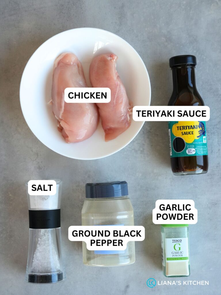 - Teriyaki sauce – This provides the main flavour and creates a delicious sticky glaze as the chicken cooks. I used a bottle from Lidl, but you can use any.