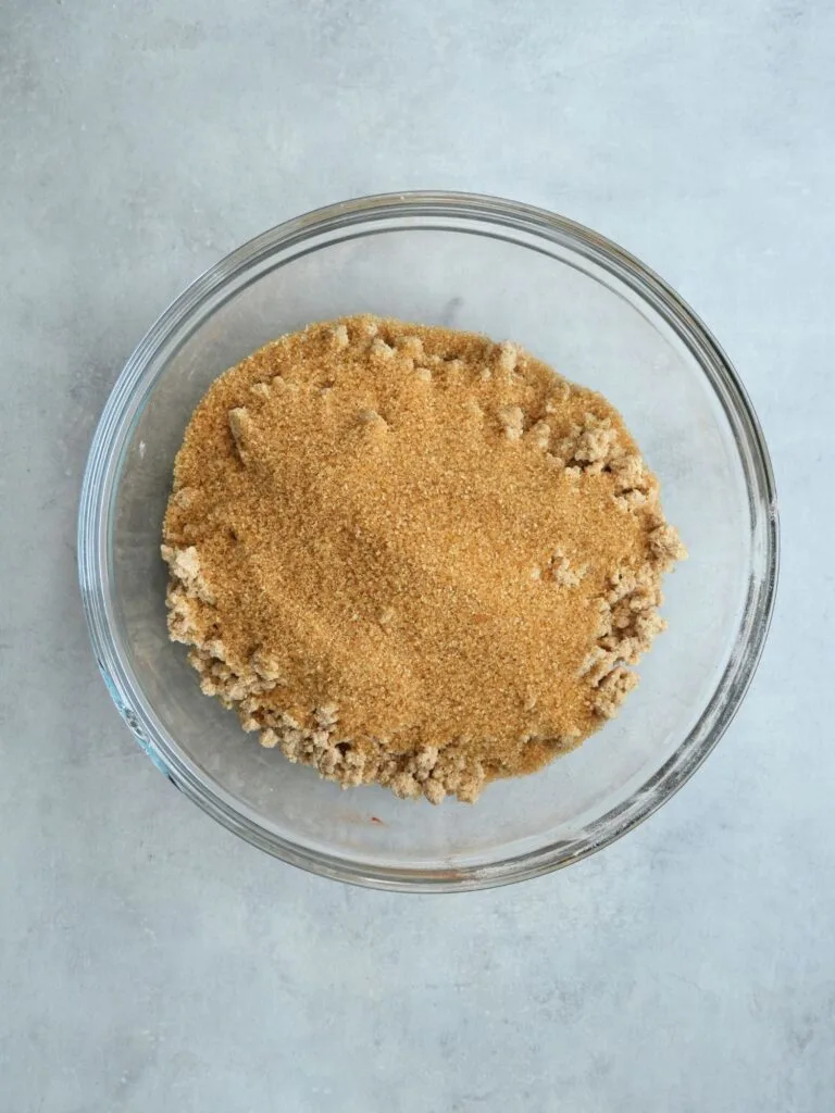 - Add the sugar, and toss the crumble to integrate all of the sugar.