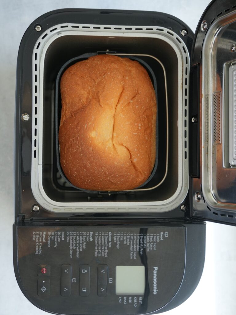 - Press start and allow the machine to knead, rise, and bake the loaf.
