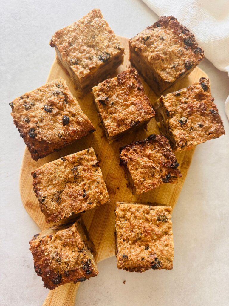- Once out of the oven, leave to cool fully in the tin before turning out and slicing into squares.