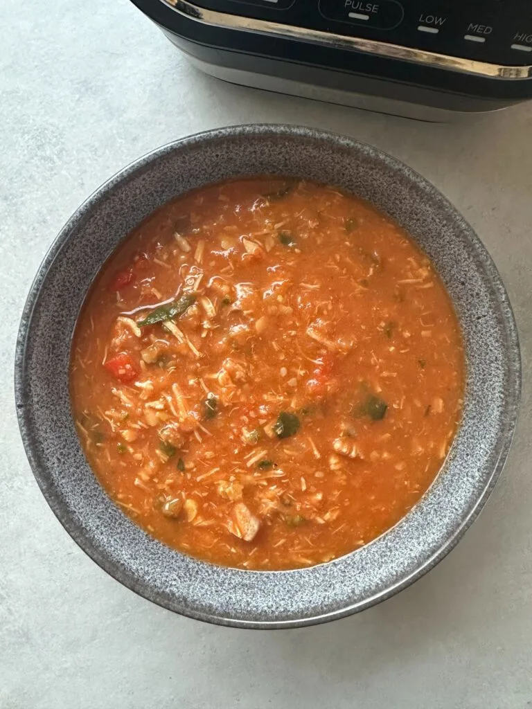 - Replace the lid and use the Pulse function a few times to lightly break everything up. If the soup is too thick, add a little extra hot water or stock until you reach your preferred consistency.