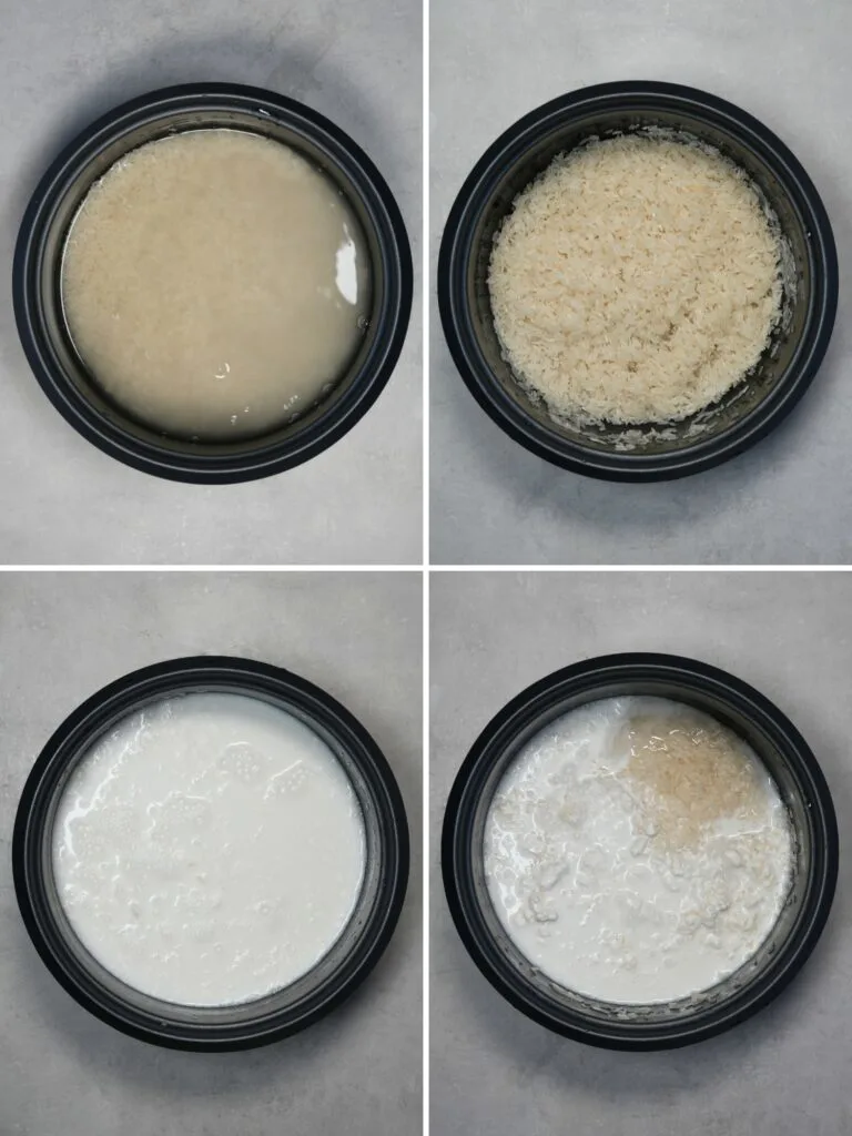 Start by giving your rice a quick rinse right in the rice cooker bowl until the water runs mostly clear – this helps keep it nice and fluffy.