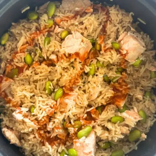 This one-pot salmon and rice dish is an easy, flavour-packed weeknight dinner cooked entirely in your rice cooker. Garlic, ginger, and soy infuse the rice, while the salmon and edamame steam perfectly on top — no need for multiple pans. It’s healthy, hands-off, and full of flavour.