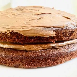 - Place the other cake on top so that the chocolate icing is sandwiched in between. Spread the remaining chocolate icing across the top of the cake. Optionally decorate with chocolate buttons or the topping of your choice.